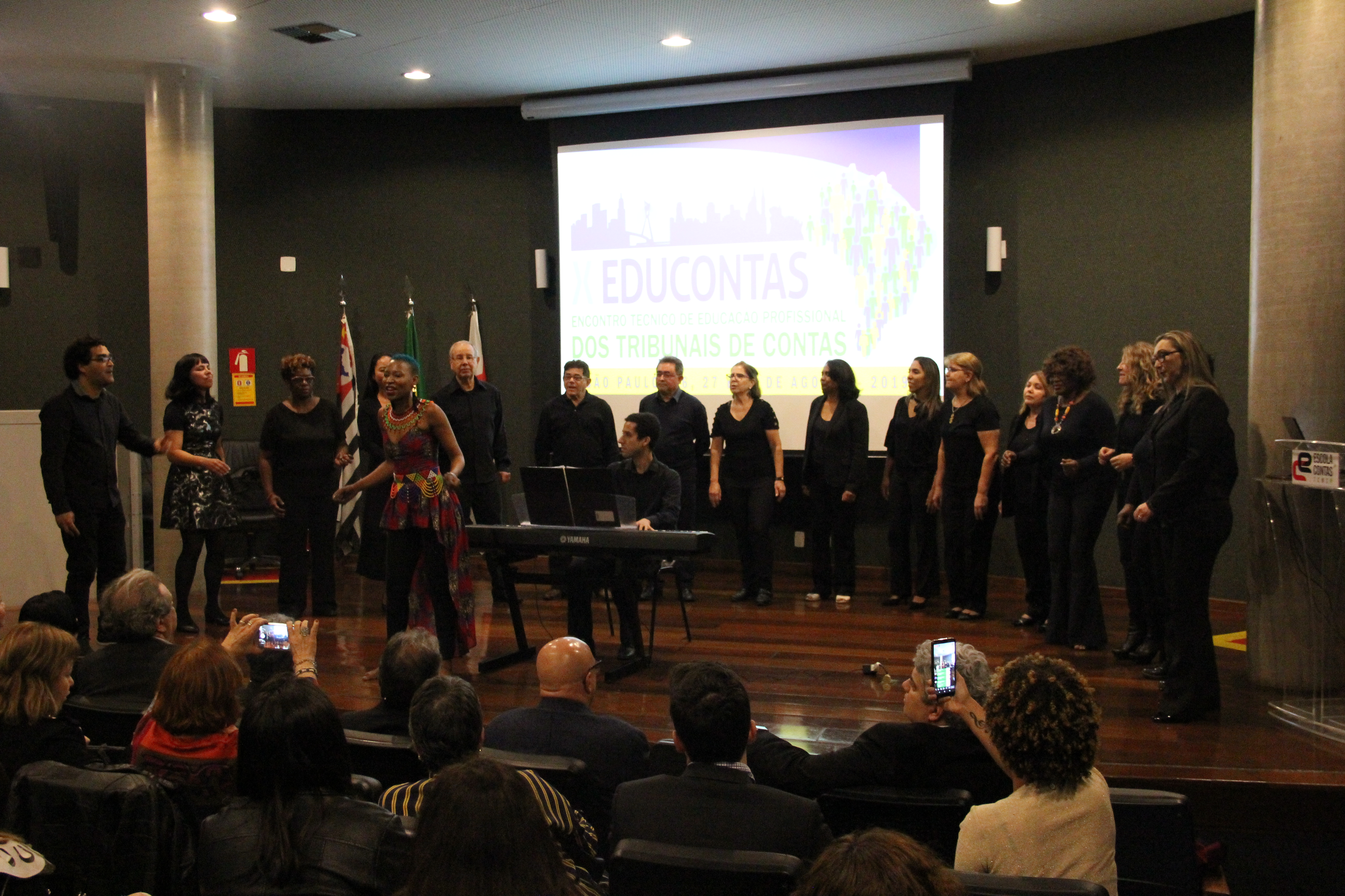 A Escola Superior de Gestão e Contas Públicas do TCMSP convida a todos para o último dia do X Educontas, que acontece hoje (28/08) a partir das 9h. Entre as atrações do dia, destaca-se a apresentação do coral do TCMSP com a cantora sul-africana radicada no Brasil, N’Duduzo Siba, às 17h30.