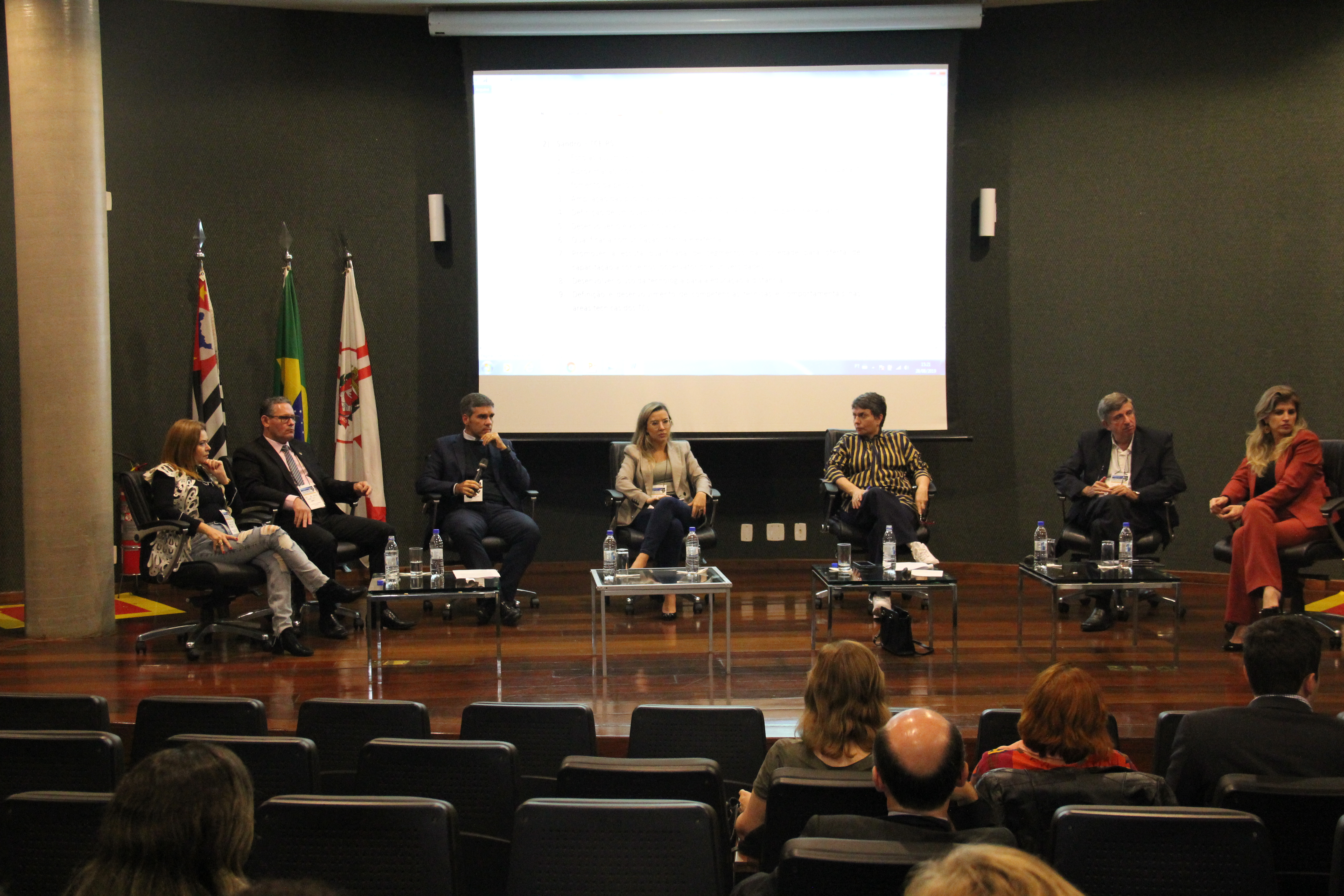 Na roda de debates, estiveram presentes a conselheira do TCE-CE, Hilária Barreto; o representante do Instituto Rui Barbosa, Luciano Calheiro Caldas; o conselheiro do TCE-ES, Rodrigo Coelho; a Coordenadora da EPCP do TCESP, Bibiana Camargo; a conselheira do TCE-TO, Doris Coutinho; o coordenador técnico do TCMSP, Gilson Garcia e Karen Estefan Dutra, diretora-geral da Escola de Contas e Gestão do TCE-RJ.