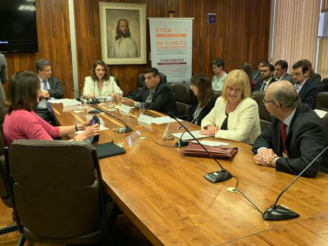 No início da tarde, sob a condução da advogada Diana Carolina Biseo Henriques, os especialistas em Direito Administrativo Fabrício Motta, do Brasil, Ismael Farrando, da Argentina, Libardo Rodríguez, da Colômbia, Henry Alexander Mejia, de El Salvador, Miguel Pezzutti, do Uruguai, e Jorge O. Danós, do Peru, discutiram as relações existentes entre “Atividade administrativa sancionatória e o devido processo legal”. Em outro espaço, a moderadora Camila Morais Cajaíba Garcez Marins, advogada, conduzia as discussões sobre “O enfrentamento da corrupção nos limites do Estado de Direito”. Para debater esse tema de grande relevância estavam os juristas Gladys Camacho, do Chile e Vivian Cristina Lima López Valle, Marcelo Semer e Floriano Azevedo Marques Neto, do Brasil.