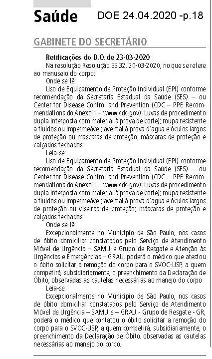 RETIFICAÇÕES do D.O. de 23-03-2020 publicadas no DOE 28/04/2020 - p. 18; alterada pela Resol 132/21