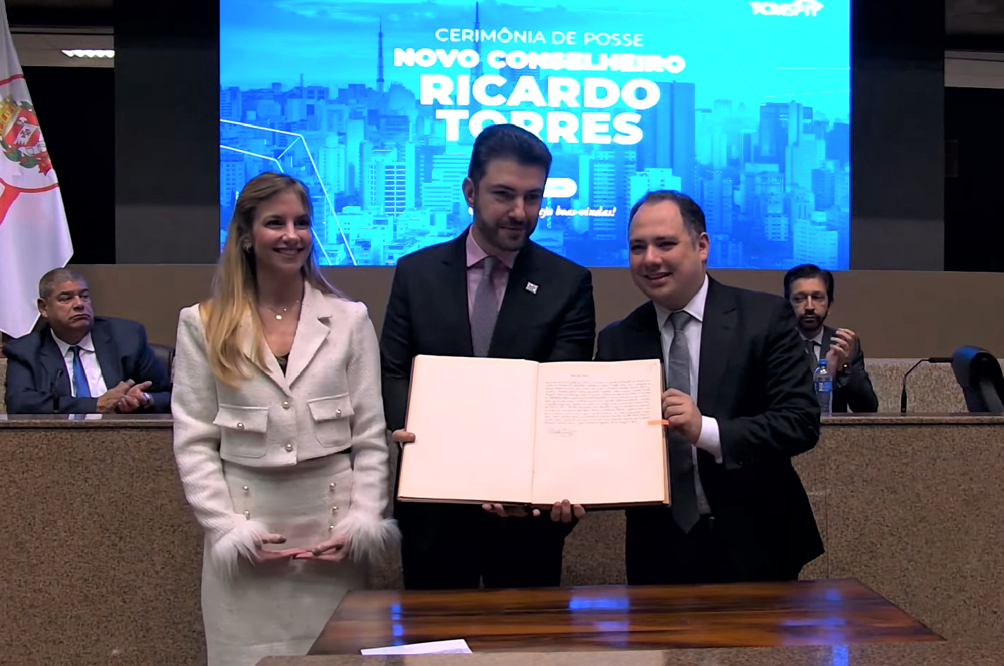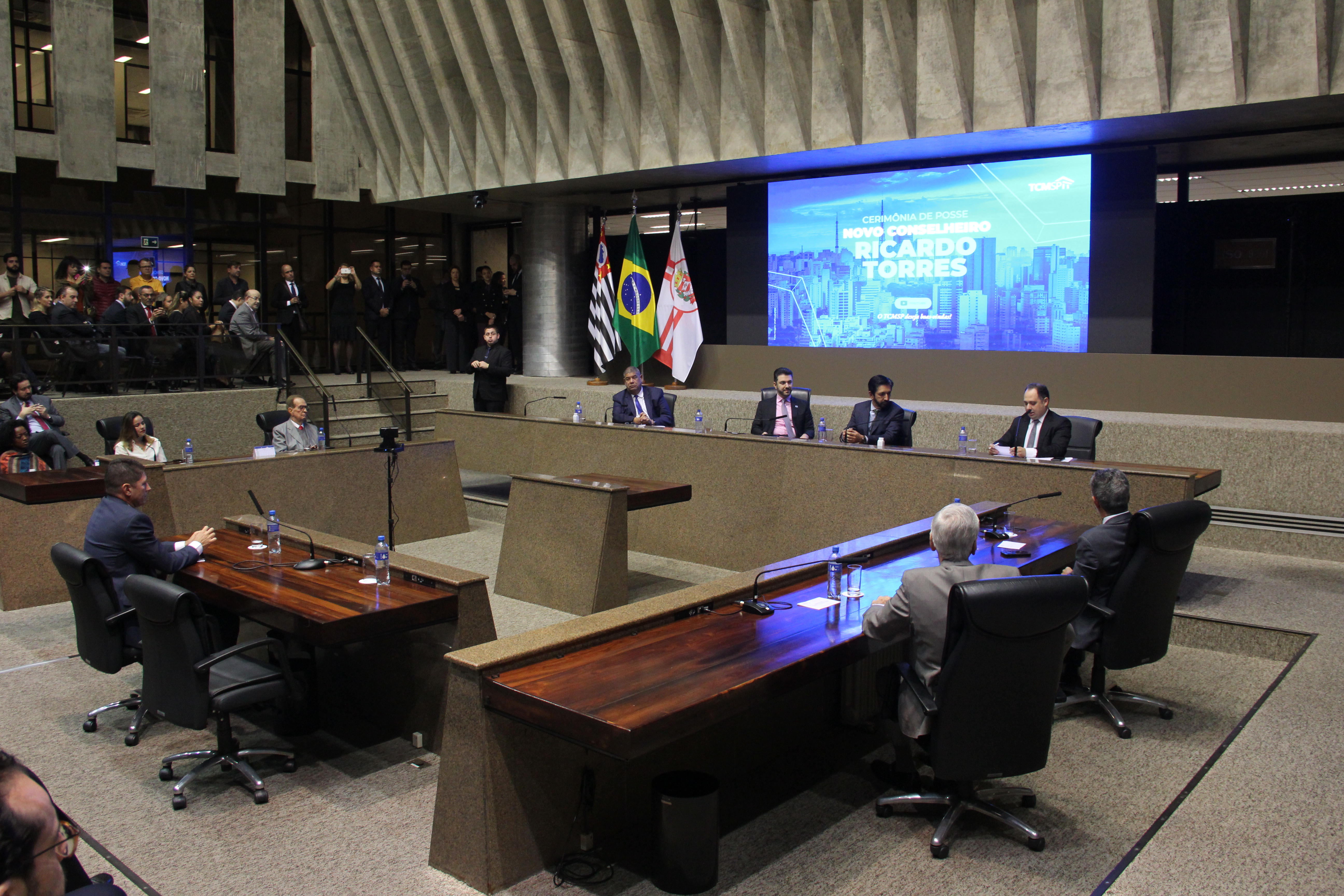 Discursos e saudações do prefeito da capital, Ricardo Nunes, do presidente da Câmara Municipal, Milton Leite, do presidente do TCMSP, Eduardo Tuma e dos demais pares de colegiado convergiram para destacar o preparo técnico e a formação acadêmica que credenciam Torres para o exercício do cargo no tribunal.