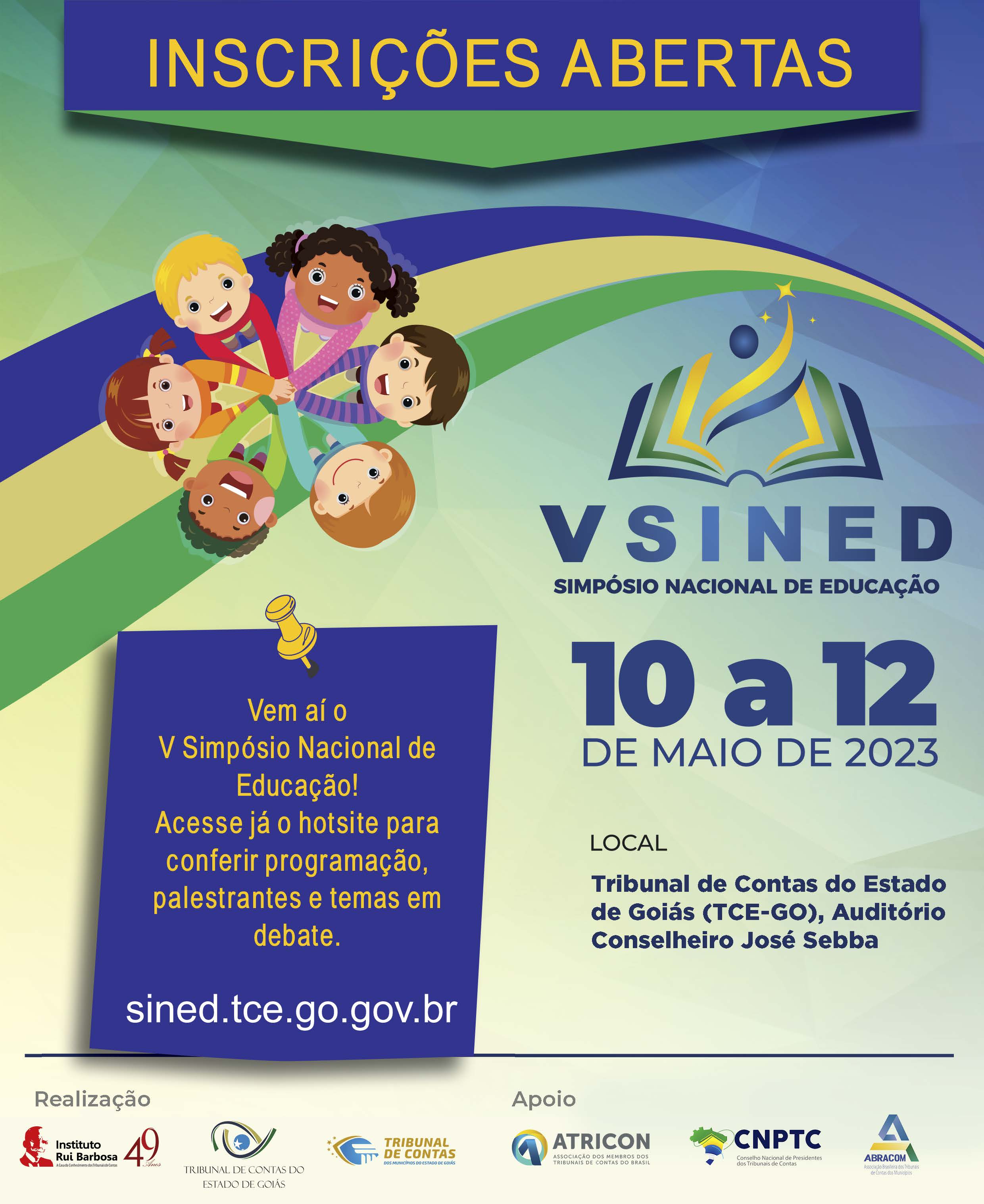 Será realizado, de 10 a 12 de maio, no auditório Conselheiro José Sebba do Tribunal de Contas do Estado de Goiás (TCE-GO) o 5º Simpósio Nacional de Educação (Sined), que reunirá especialistas de todo o país para discutir a interação entre o controle externo e a sociedade na área da educação.