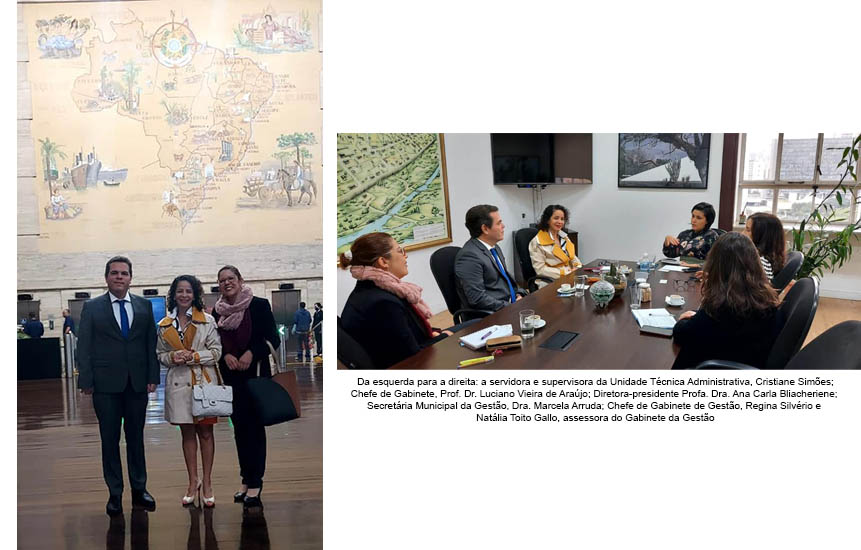 Também participaram da reunião, o chefe de gabinete da EGC, professor doutor Luciano Vieira de Araújo, e a Supervisora da Unidade Técnica Administrativa, Cristiane Simões Gonçalves. Por parte da Secretaria Municipal de Gestão, estiveram presentes a chefe de gabinete da Pasta, Regina Silvério, e a assessora Natália Toito Gallo.