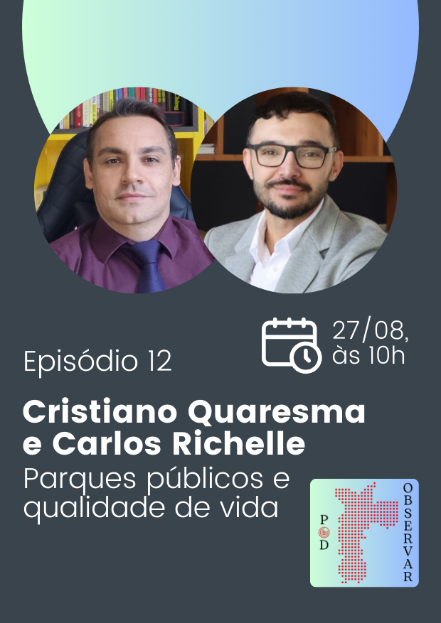 Os convidados do Pod Observar para tratar do tema são o professor Cristiano Capellani Quaresma, da Uninove, doutor em Geografia pela Unicamp; e o auditor e coordenador do TCMSP, Carlos Richelle Soares da Silva, graduado em Direito pela Universidade Federal do Ceará, que atua no controle externo dos contratos administrativos firmados no município de São Paulo.
