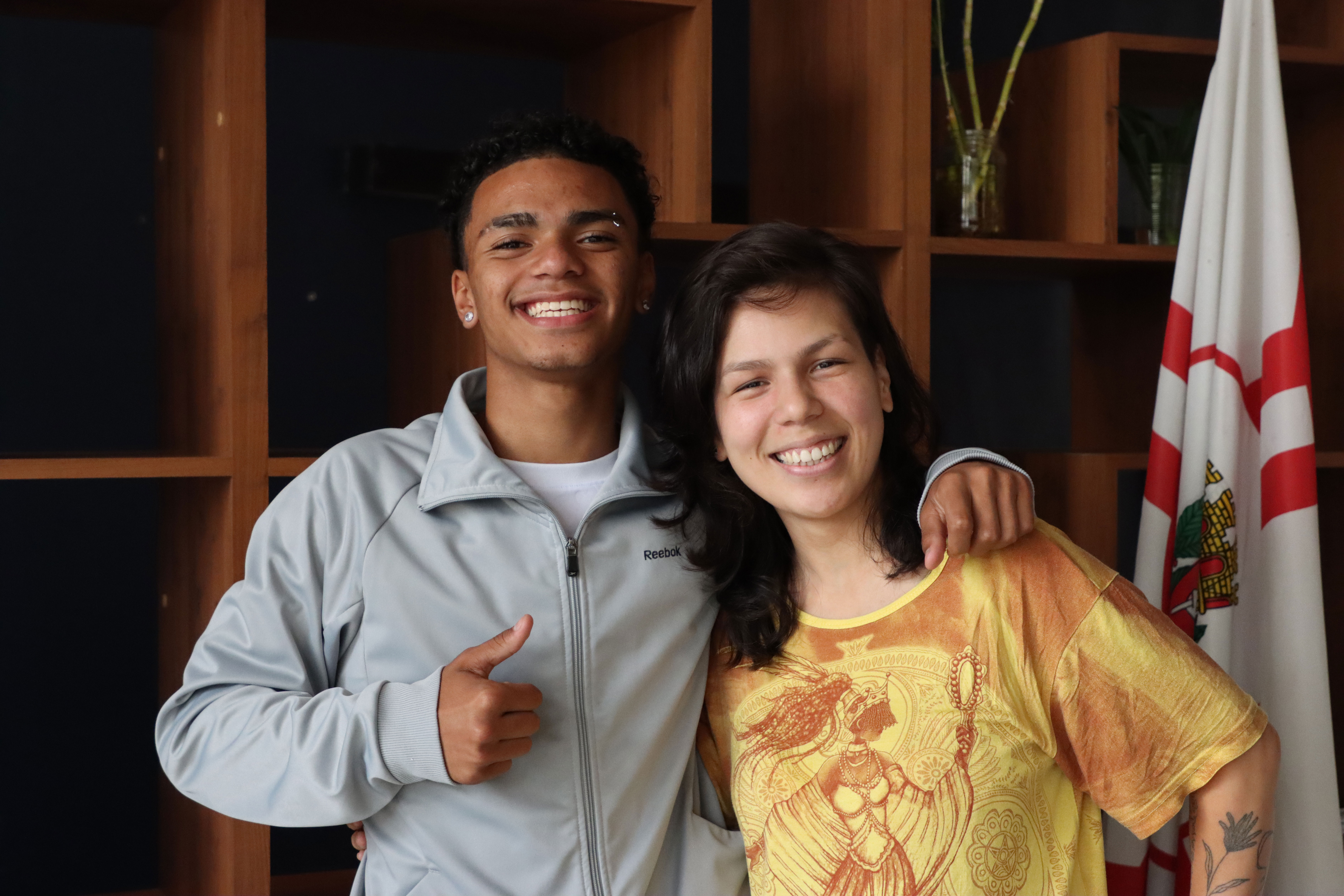 Estudante Luigi Gomes e a professora Maria Luiza Sayuri