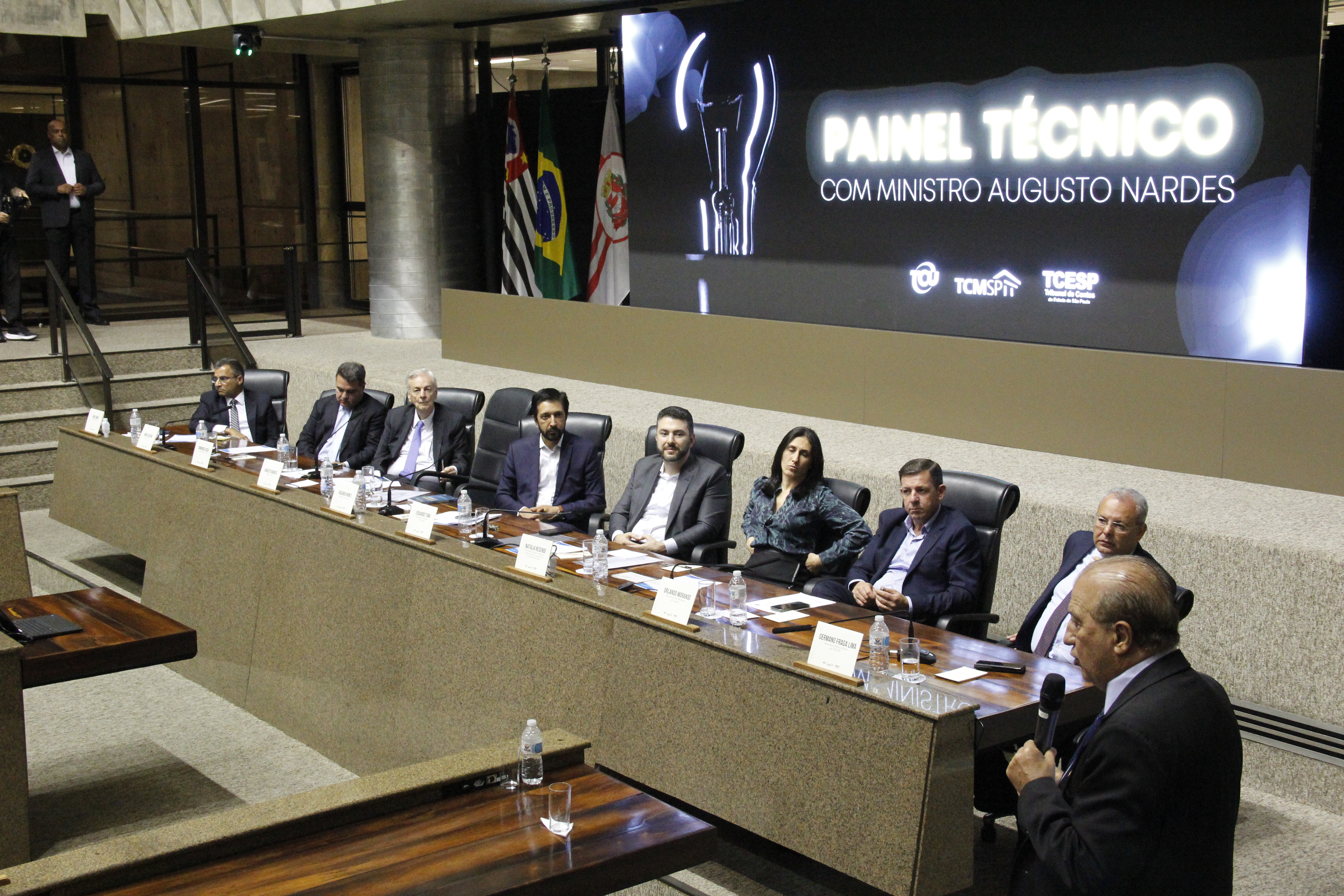 Também compuseram a mesa o ministro Jorge Oliveira (TCU), Germano Fraga Lima (Secretário-Diretor Geral TCE-SP, representando o presidente Renato Martins Costa) e o vereador de São Paulo João Jorge, presidente da CPI da ENEL.