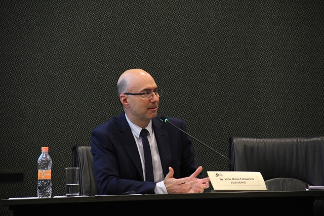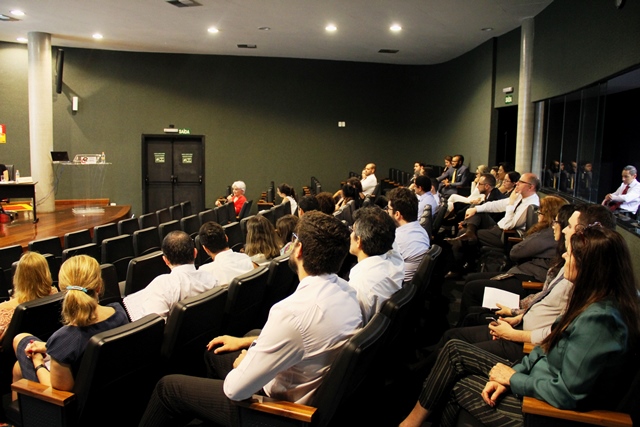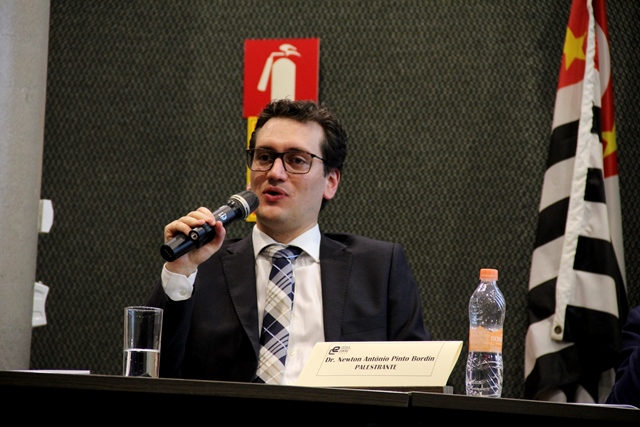 A mediação foi realizada por Egle dos Santos Monteiro, da Assessoria Jurídica, que introduziu os palestrantes convidados: Valdir Godoi Buqui Netto, também da Assessoria, Daiesse Santos Bonfim, da Subsecretaria de Fiscalização, o agente de fiscalização Newton Antônio Pinto Bordin e o Subsecretário de Fiscalização e Controle, Lívio Mario Fornazieri.