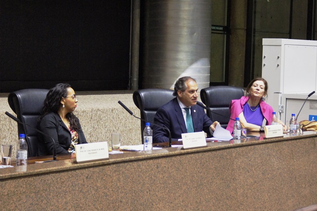 Participaram da mesa de debates o presidente do Tribunal de Contas do Município de São Paulo, conselheiro João Antonio; a professora da Escola de Contas do TCM Suelen Lima Benício; e o juiz do TRE-SP e presidente do Instituto dos Advogados de São Paulo, José Horácio Halfeld Ribeiro.