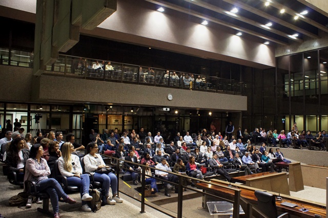 Ao final de sua exposição, Celso Bandeira de Mello foi aplaudido de pé pelos presentes ao debate no Plenário do TCM.
