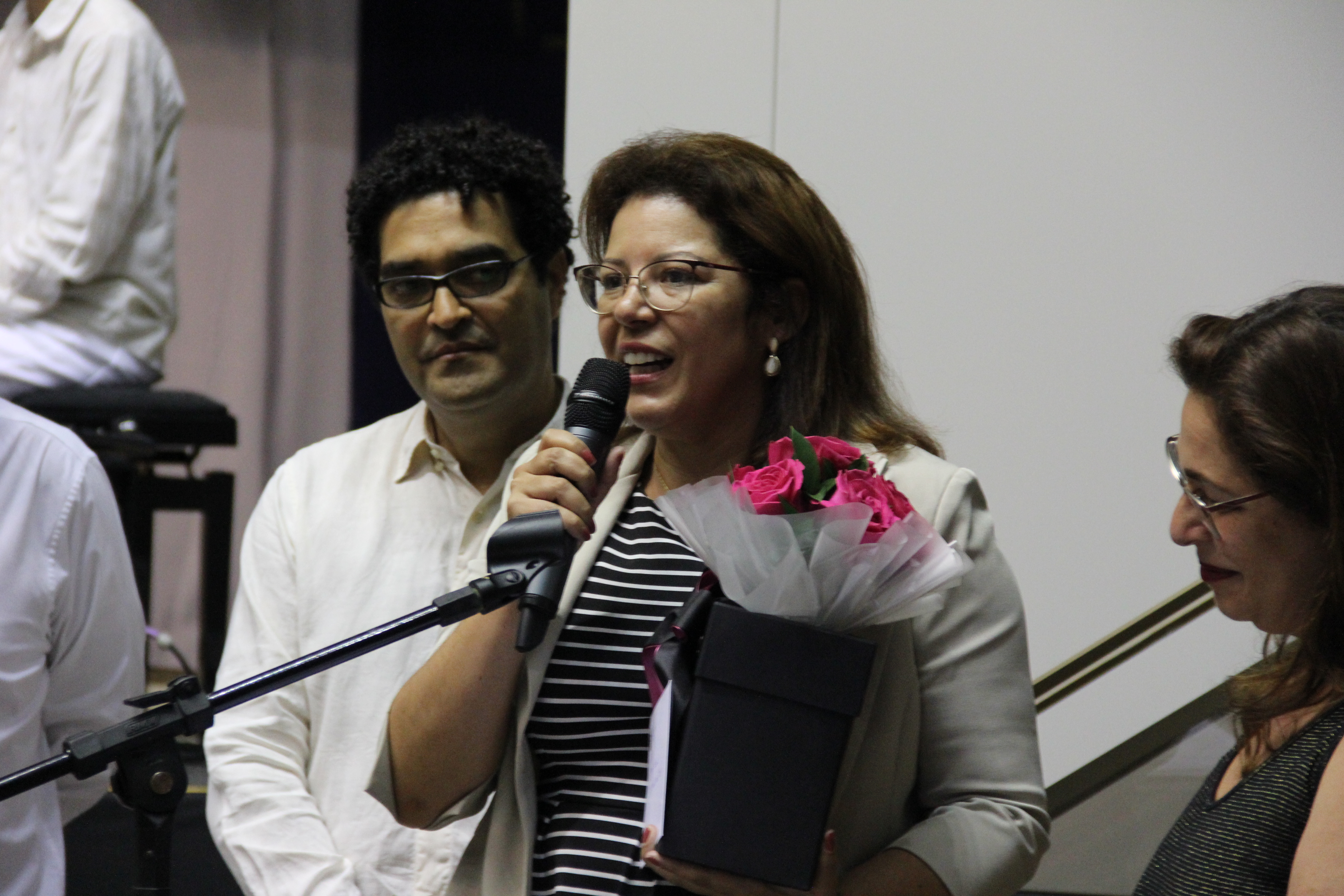 Cláudia Mussi recebeu das mãos do conselheiro Mauricio Faria a homenagem pela presença no Encontro. Ele elogiou a mistura entre a jovialidade do grupo e a escolha das músicas. “Foi uma escolha de repertório universo e atemporal, que cobre vários períodos da música com sensibilidade. É muito estimulante saber que temos um conjunto de jovens cultos musicalmente”, afirmou o conselheiro.