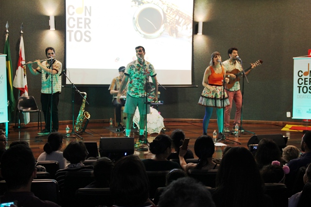 Formada pelos músicos Adriano Busco (bateria), Luis Santiago Málaga (sopros), José Leônidas (violão), Marta Najjar (voz e contação) e Tucci Fattore (voz e contação), o quinteto trouxe ao público um misto de canções conhecidas na MPB, como “Não é Proibido”, famosa na voz de Marisa Monte; “Fico Assim Sem Você”, de Claudinho & Buchecha; “Sabiá”, canção conhecida pela interpretação de Luiz Gonzaga, com cantigas de roda que fazem parte da infância das crianças, como “O Cravo Brigou Com a Rosa”, “Fui Morar Numa Casinha”, “Dona Aranha” e “Borboletinha”, entre outras. Outro ponto alto do espetáculo foi a versão da cantiga “Atirei o Pau no Gato” na base da música “Another Brick in the Wall”, da banda de rock britânica Pink Floyd.